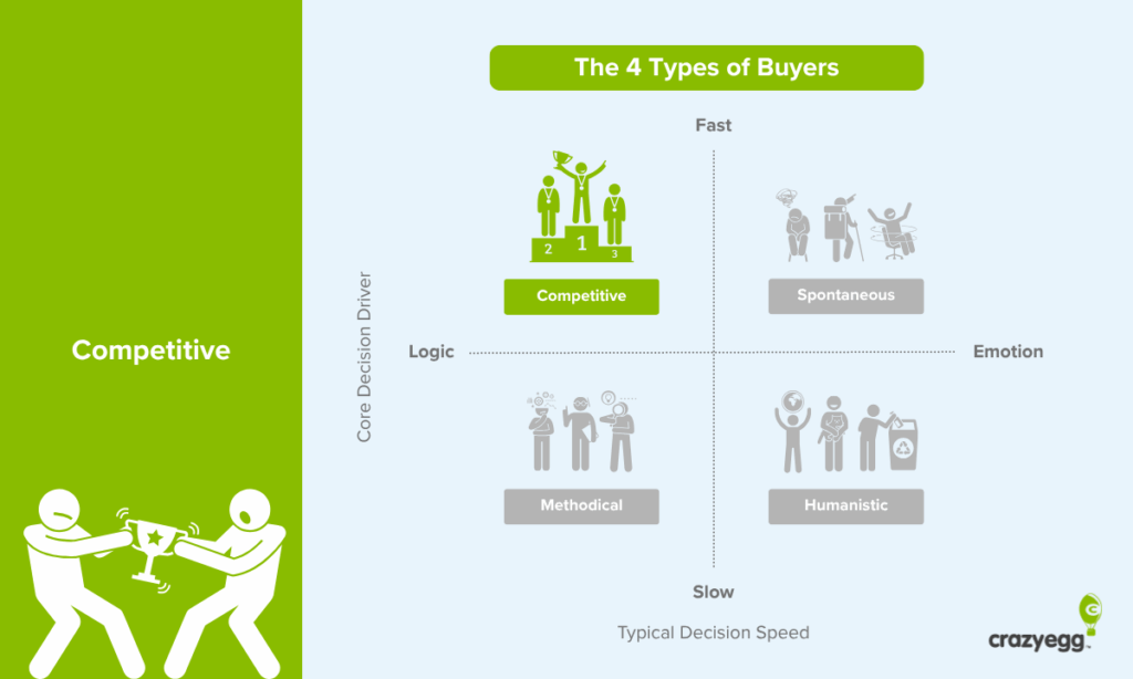 One of the most enduring insights they shared in the book was the 4 types of buyers. While every person is unique, they showed that decision-making patterns could be distilled into four discrete types: competitive, methodical, spontaneous, and humanistic.