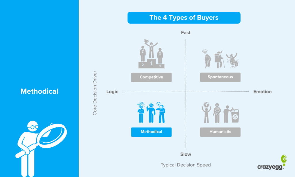 Methodical buyers are driven by thoroughness and accuracy. They want to be sure that they are making the objectively best decision with the most accurate information possible.
