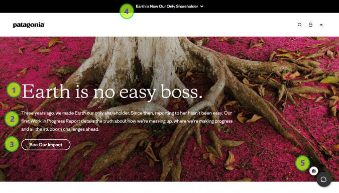 You simply cannot visit Patagonia’s site without discovering the companyโs mission and what they care about. Itโs in your face, sure, but it shows they put their profits second to their concerns for the environment.