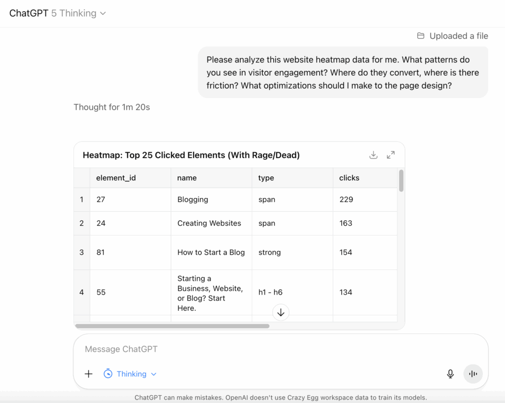 Hereโs an example of Crazy Egg Heatmap data in ChatGPT:
