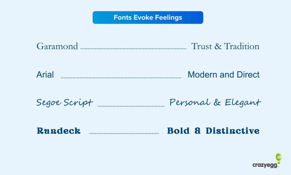 So if you plan on getting more adventurous with your use of fonts for your logo or a website, then itโs probably a good idea to familiarize yourself with the fundamental associations between different fonts and the feelings they evoke.