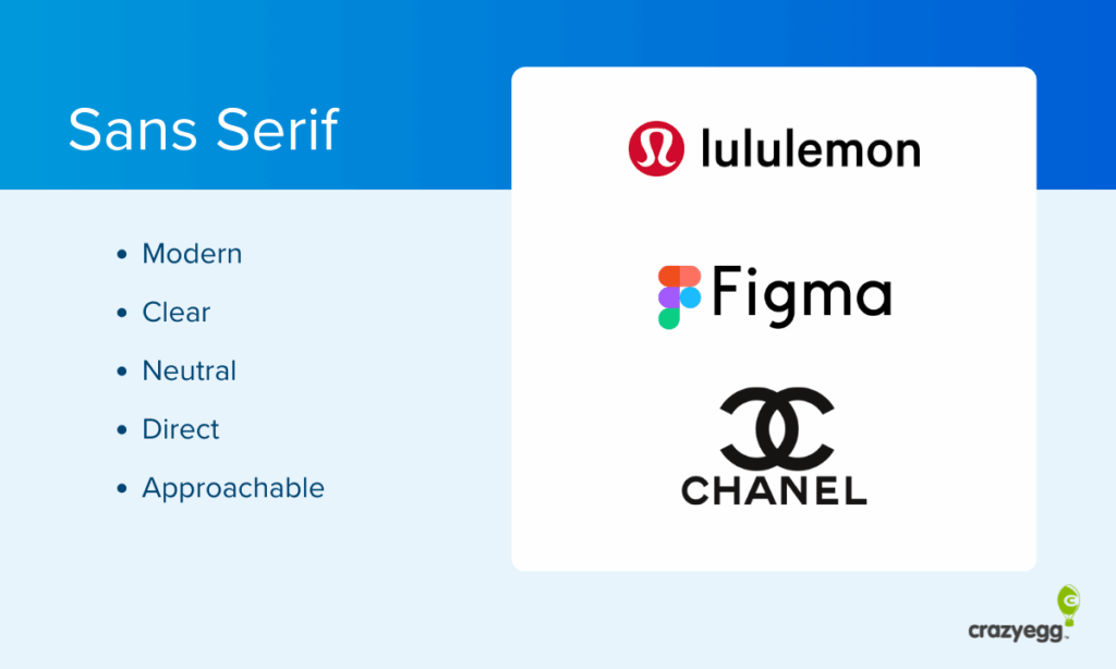 Sans serif typefaces lack the finishing strokes found on serif letters, which results in cleaner, simpler letterforms. The minimal styling feels more modern, efficient, and approachable.