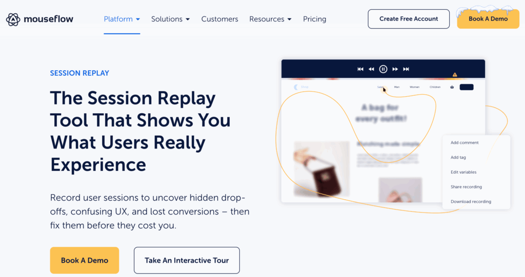 - Event tracking thatโs tied directly to recordings. Mouseflow lets you track meaningful user actions and tie them back to session replay. With this in mind, I chose tools that treat events as top-of-mind, first-class dataโnot just background labels.