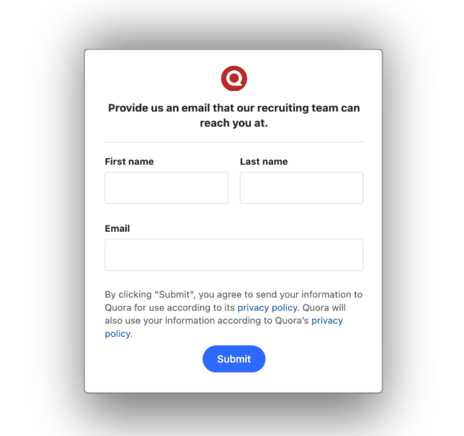 For both of these methods, you can use Quora Lead Gen Forms to capture a user’s contact information without making them leave the site.