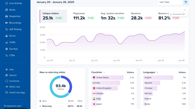 Heatmap tools record how visitors interact with your site, visualizing everything in a colorful map. Areas on a page that users explore, observe, or click